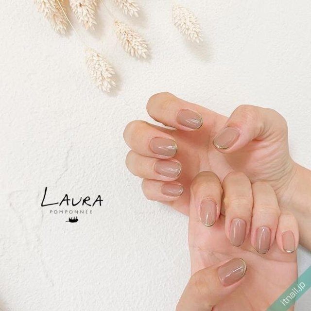 あたたかみをアップ!シンプルネイルにはゴールドをプラスして♡
