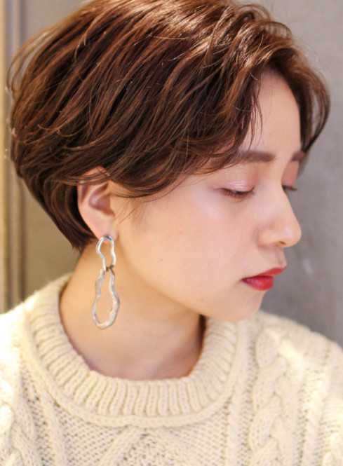 ふわっとエアリーに仕上げた、丸みフォルムのショートスタイルです。スタイリングしやすいので、アレンジを楽しみたい方にもおすすめですよ。