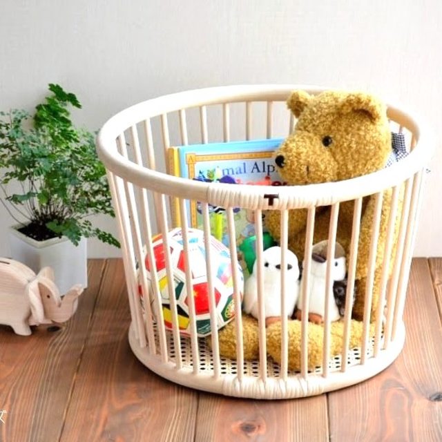 木目に北欧の雰囲気を感じるバスケットがお部屋のインテリアにマッチしていますね。