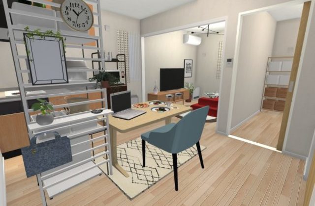 2DKの家具レイアウトで大切なことは、ひとつになっているダイニングとキッチンを分けることです。そうすれば家具のレイアウトが簡単になり、また収納も増やすことができます。
