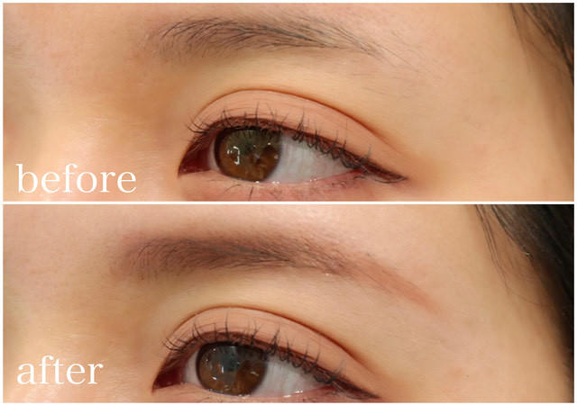 丸みがあるなだらかな形と、ふわっとナチュラルで自眉感があるの今っぽい垢抜け眉です。整える前と整えてから描いた眉を比べると、ぐっと垢抜け感が出ました。