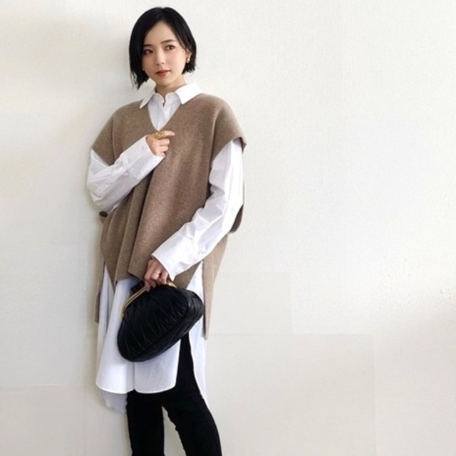 ZARAのロング白シャツは、季節問わず人気のアイテム。今季はベストやビスチェとレイヤードするのが旬。