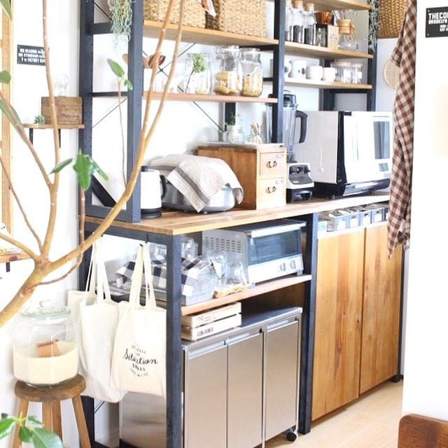 食器棚とは別にこういった収納があると、とっても便利ですね。デザインはお部屋に合わせたカラーをチョイスして見栄え良くセットしましょう。