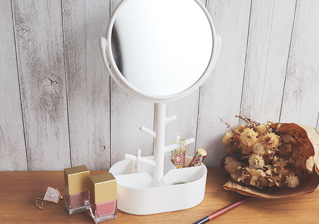 お洒落な雑貨屋さん顔負け!アクセ収納付き卓上ミラーがダイソーで300円♡