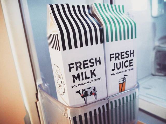 冷蔵庫を開けたときでも、モノトーンの牛乳パックが目に入るだけでワクワクしますね。インスタ映えするだけでなく、冷蔵庫内をキレイにキープしようという心がけにも繋がりそうです!