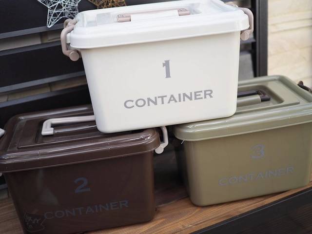各ボックスにはシンプルに数字と「CONTAINER」とグレーで書かれています。