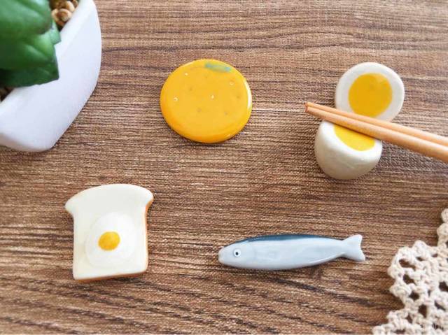 今回紹介したなかでも一番箸を置きやすい、卵を半分に割っためずらしいデザイン。和食はもちろん、味玉入りのラーメンを食べる際にいかがでしょうか♪