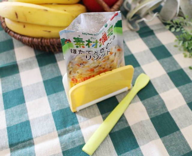 離乳食のレトルトパウチの幅にぴったりな「レトルトパウチホルダー」。