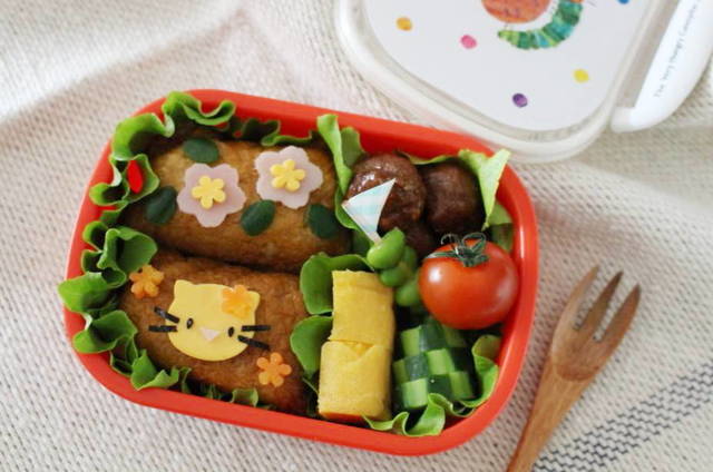 実はデコ弁初挑戦の筆者なのですが、子どもが喜んでくれそうなかわいいデコ弁が、簡単にできあがりましたよ♪小さいお花の型で猫ちゃんの髪飾りを作ったり、ピンクのお花も飾ってみました!デコ弁キットのおかげで、地味なお稲荷さんも賑やかになりましたね!