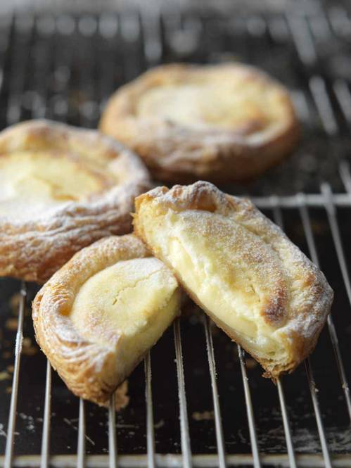 「フロマージュデニッシュ」の特徴は、2層に分かれたチーズ。上は北海道産クリームチーズとマスカルポーネチーズ、下はイタリア産マスカルポーネチーズとカスタードを合わせたクリームチーズになっています。