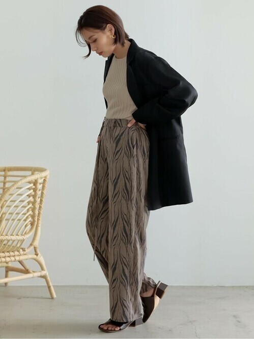 ニュアンスのあるタッチで描かれたアニマル柄は派手過ぎず、定番コーデにこなれ感をプラスしてくれます。こちらは低身長&高身長さん向けサイズも展開しているので、お直しせずに綺麗にはけるのも魅力です。