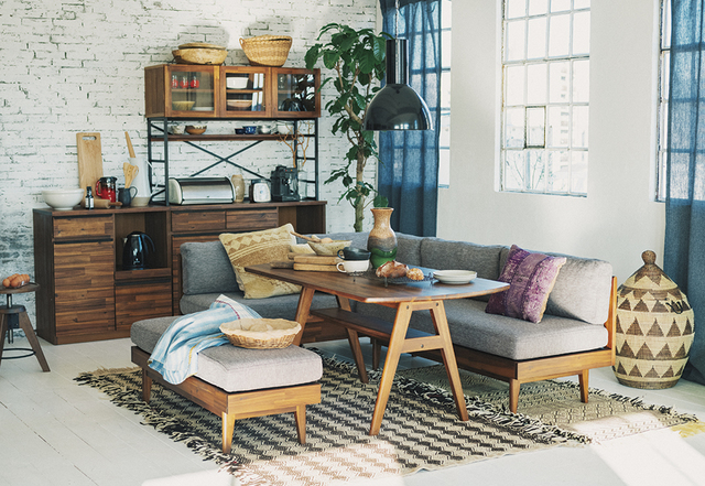 背もたれのないベンチは、お手持ちのチェアにも合わせやすく、少しずつインテリアを揃えたい方にもオススメ。人数やスペースに合わせてレイアウトを楽しめる、幅広くフィットするカジュアルさが魅力的です。