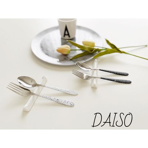 100均のカトラリーなのに、この高見え感!独特な飛び散り模様がインスタで話題のカトラリーシリーズです。ディナースプーン・フォーク・箸まで一式揃えても手頃なお値段なのがが嬉しい。
