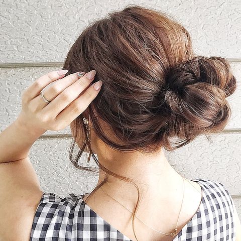 浴衣やワンピスタイルに色気を演出してくれる、ルーズなシニヨンヘアです。おくれ毛をたっぷり下ろし髪を耳にかけることで、大人の色っぽさが醸し出されます。