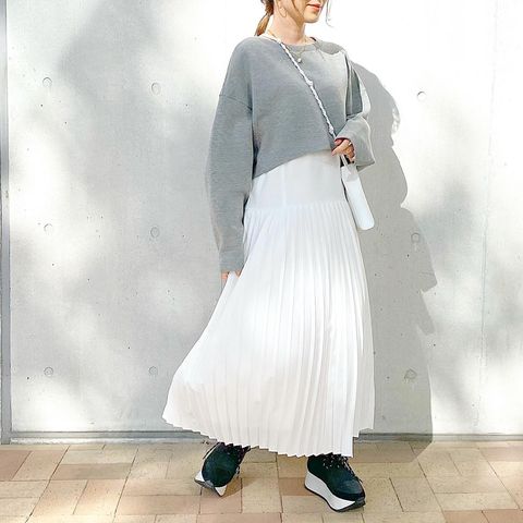 カットソー素材のトップスとプリーツ仕立てのキャミソールワンピなど異素材を組み合わせたデザインも多く、価格は少しお高めですがワンランク上のコーデを約束してくれます。