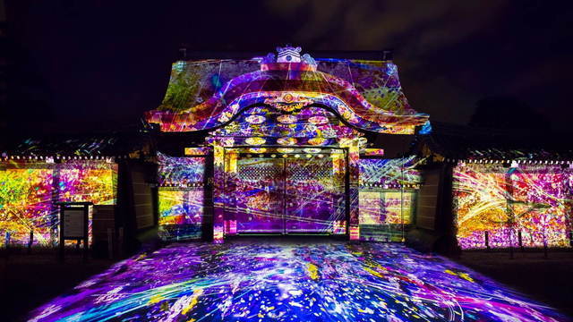 ネイキッドを率いる村松亮太郎が写真家レスリー・キーとタッグを組んだカラフルな作品や、重要文化財 唐門にプロジェクションマッピングを投影した「立春」、内堀に迫力のある桜のアートを投影した「Colors of Spring」など、幻想的で華やかなな春の空間を演出。