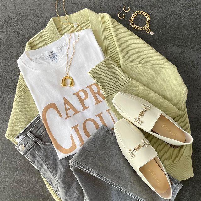 気温が高くなる日中はカーディガンを外しても、そのままオシャレな着こなしを楽しめます。程よく力の抜けた頑張りすぎないコーディネートが、こなれた雰囲気を演出してくれますよ。