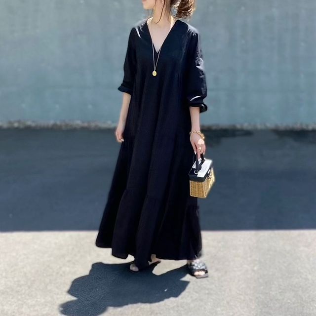 今年もトレンドの透け感は、ブラックを軽やかに見せてくれる素材です。ワントーンで重さが引き立ってしまうブラックのワンピースも、透け感素材だと軽やかな印象に。また、奥ゆかしい色っぽさまで与えてくれます。
