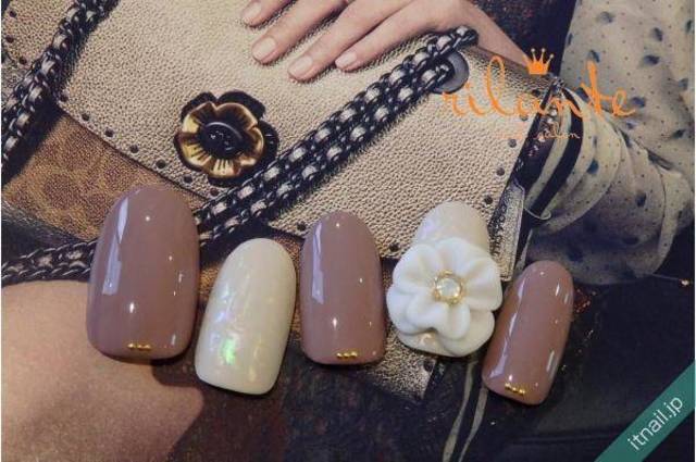 こちらは、少しブラウンがかったベージュピンクが可愛いフレンチの大理石ネイルです。