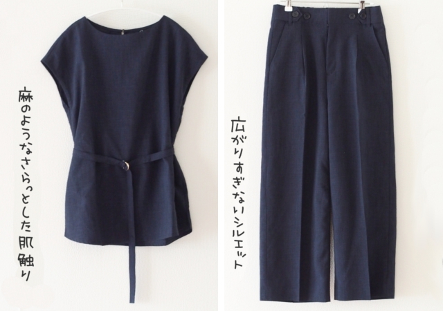セットアップはブラウスとワイドパンツの組み合わせで、別売りのアイテム。