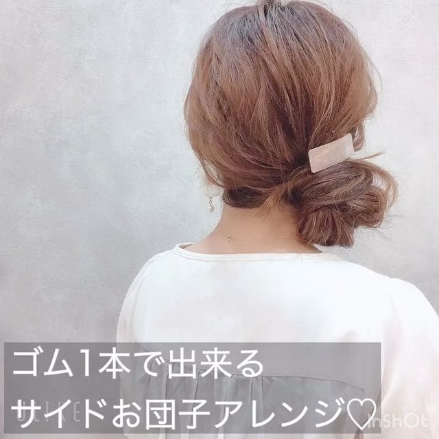 ゴム1つで作るお団子は、サイドに寄せるだけでぐっとフェミニンな印象に。全体をふんわりほぐせば、360度どこから見ても可愛いヘアスタイルが完成します。