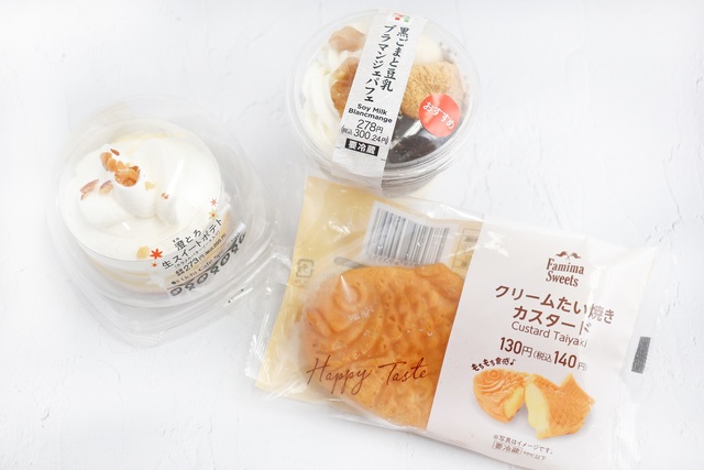 そこで今回は、今から秋の終わりまで何回も食べたくなるような新感覚和スイーツをコンビニ3社からピックアップ! さっそく実食です。