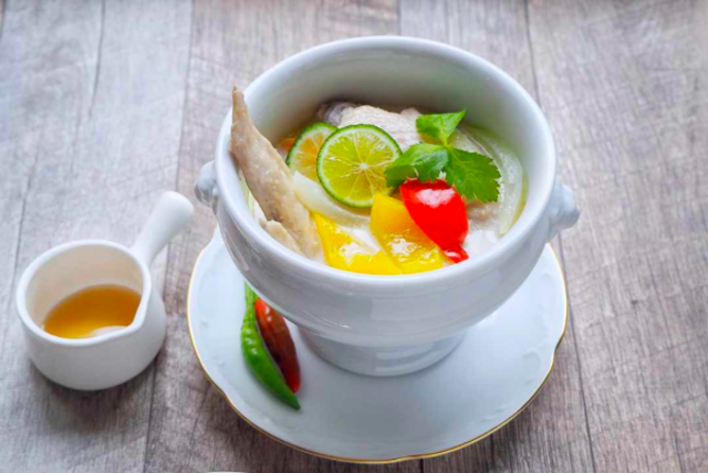 タイの名物スープ「トムカーガイ」。本場ではトムヤムクンと並ぶ人気を誇るのですが、あまり知らない人も多いのでは?鶏肉を生姜やハーブの効いたココナッツミルクで煮たスープで、トムヤムクンより食べやすいまろやかな風味が特徴です。