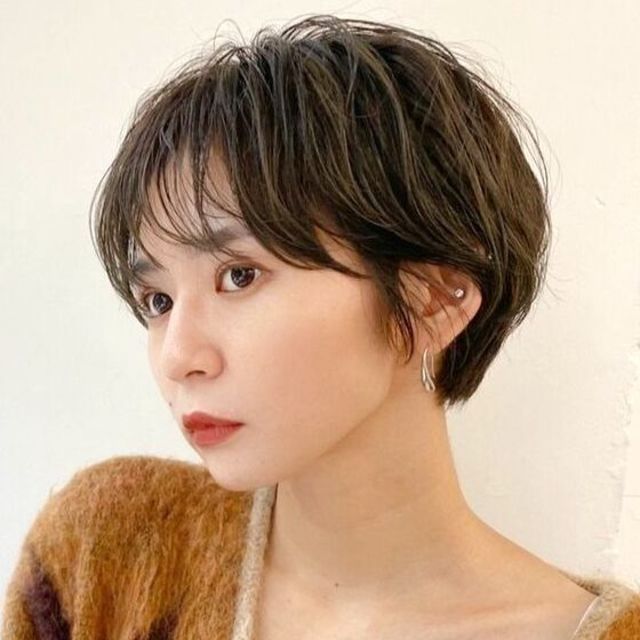 前髪なしの暗髪ショートを軽やかに仕上げたいという方におすすめです。
