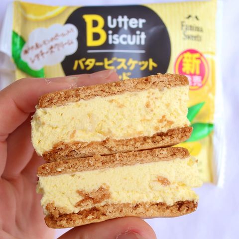 人気のバタービスケットサンドシリーズから、爽やかなレモン味が登場!バターの風味広がるビスケット生地で、瀬戸内産レモンピール入りのレアチーズクリームをたっぷりサンド。小腹が空いた時にちょうど良いサイズ感も◎。