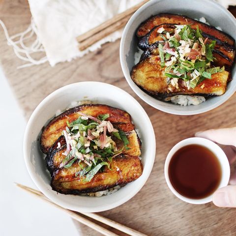 甘辛く焼いたナスの蒲焼き丼は、うなぎにも負けないおいしさ♡少し味付けを薄くして、単品としてお酒のおつまみなどにするのもおすすめです。
