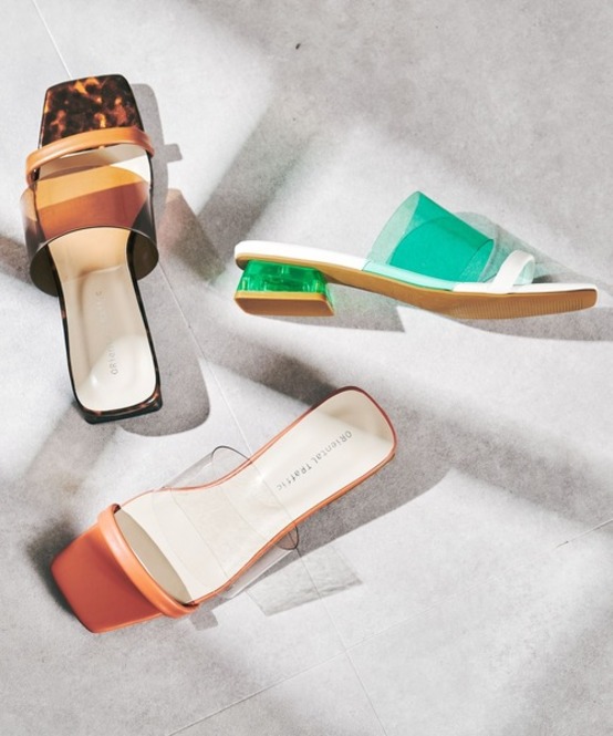 足元を夏仕様に彩る、クリア素材のサンダル。バイカラーのアッパーデザインが、コーデをぐっと華やかに見せてくれます。