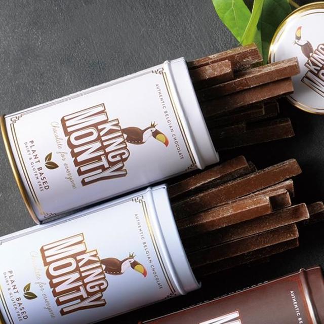 ブランドのロゴ入り缶に入った「キングモンティ ライスミルクチョコスティック」は、ヨーロッパベジタリアン連合のヴィーガン認証を取得したカカオ42%のライスミルクを使用。「ヘーゼルナッツクランチ」「クラシックカカオ」「ポップライス」の3種類があり、価格はいずれも約20本入り626円。現在販売中。