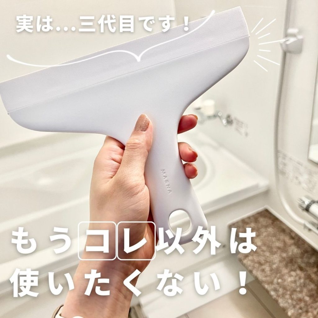 「掃除グッズをお手入れする」これ地味にストレスじゃないですか?マーナのスキージーは継ぎ目がないんです。お手入れ不要なシンプルさがリピしている理由のひとつです。ちなみに私は1年ほどで買い替えていますよ。