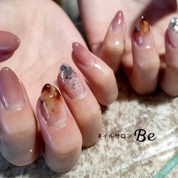 ピンクとブラウンをミックスさせながら、もやもやした塗りかけのようなネイルデザインへ♪爪ごとにピンク強めやブラウン強めのネイルを作ることで、シンプルすぎないおしゃれネイルになります。抜け感のある仕上がりもいいですね!