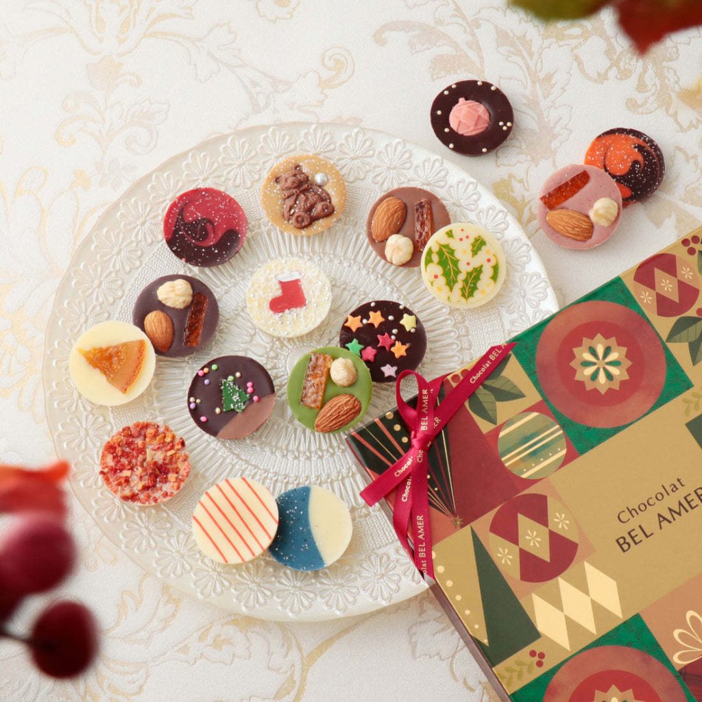 小さな板チョコをイメージした、ベルアメールで人気のチョコレート。一口サイズで食べやすく、素材の味を楽しめます。一枚一枚クリスマス気分を感じられるデザインは、見るだけ心も楽しくなっちゃいます。