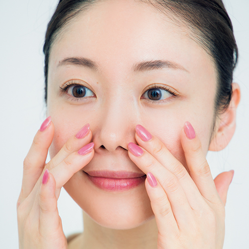 2プッシュの後、指の腹を使って、顔の中心から外側に向かって均一に塗り広げます。