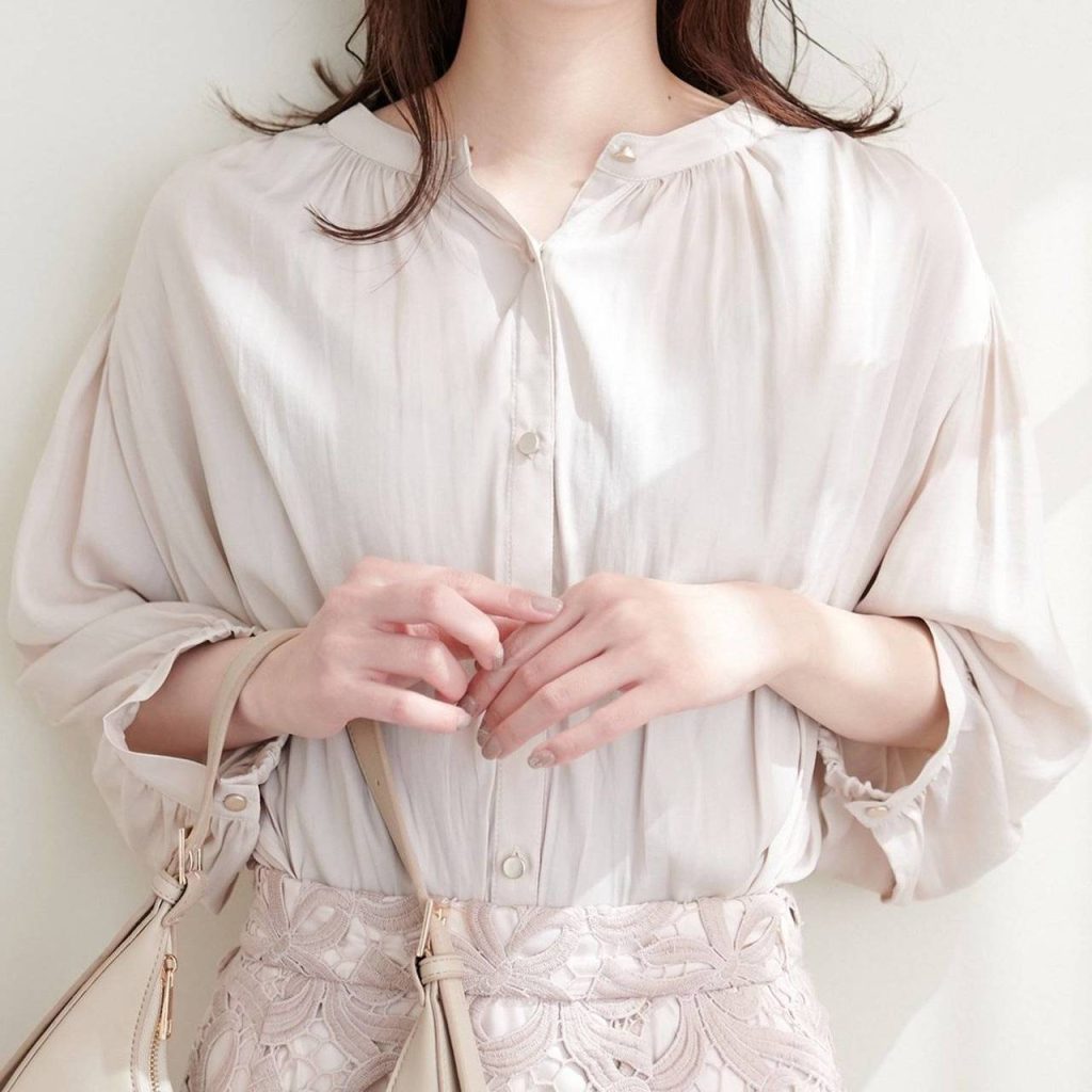 今回ラストにご紹介する2023年春におすすめしたいトップスは、とろみのある質感のブラウスです。