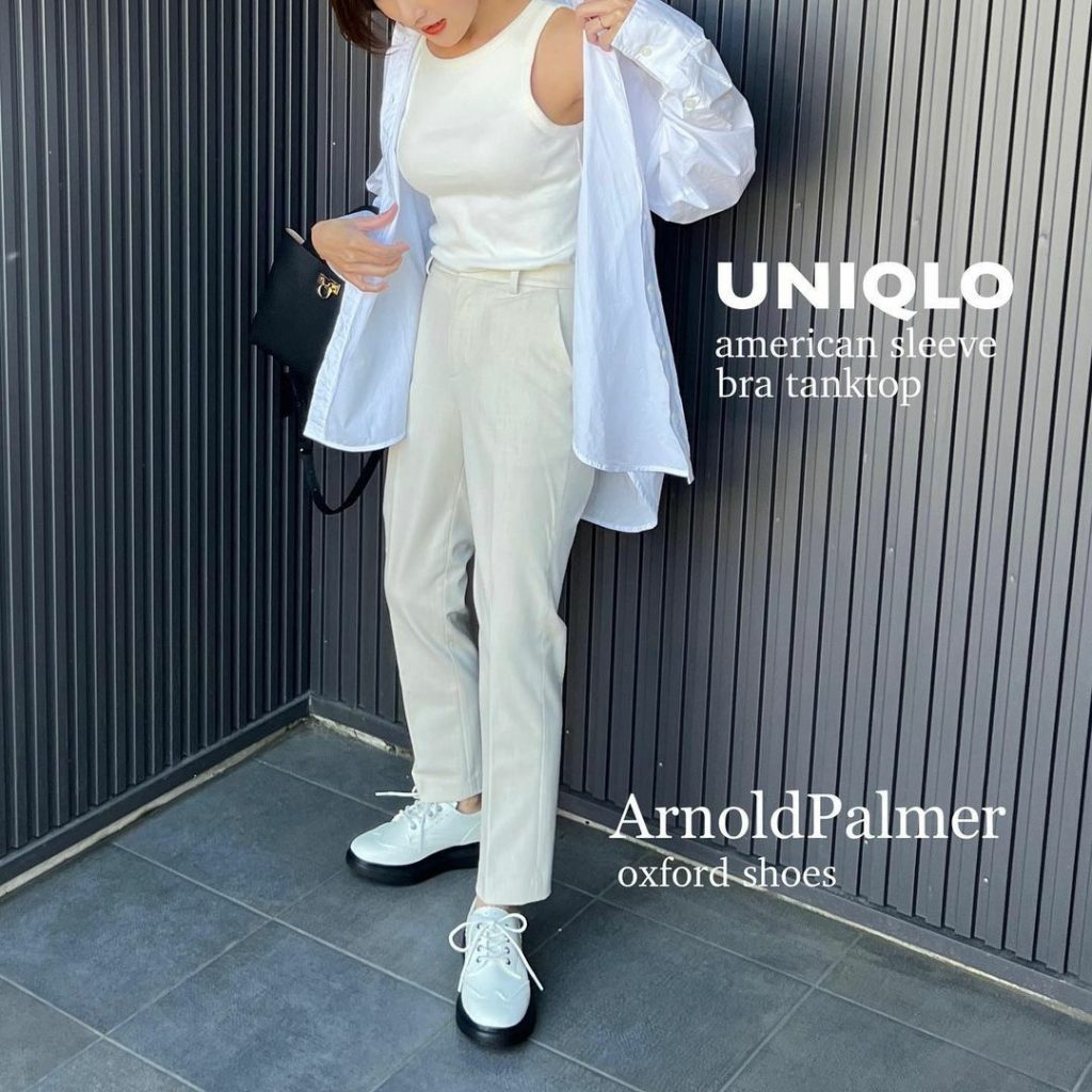 ラクにはけるので、オフの日にもベストマッチ。アメスリタンクトップにシャツを羽織った涼しげコーデでは、パンツがきれいめさを主張。大人っぽさも忘れないカジュアルな着こなしに仕上がっています。