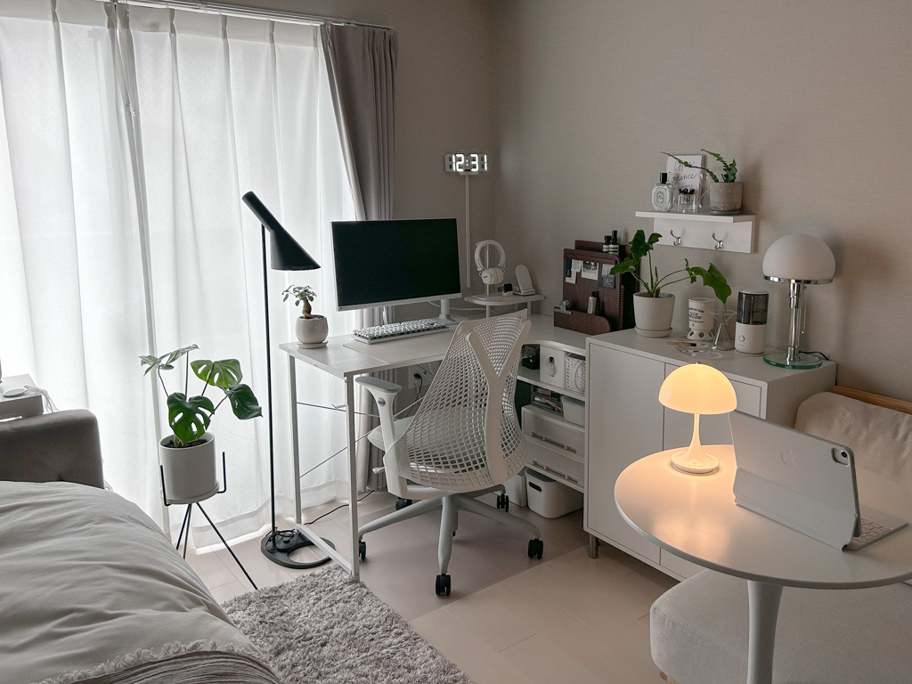 ゲームが趣味だというLunaさん。デスクやチェア、ガジェット関係のものもすべて白で統一されています。すっきりと整頓されていて、お仕事もしやすそう!
