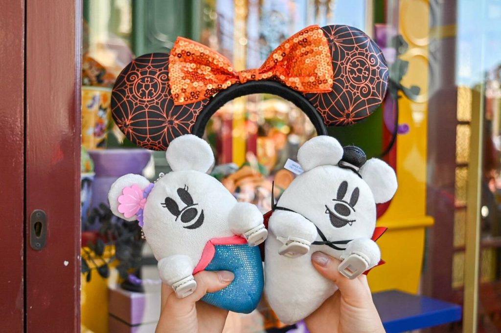 ハロウィーンイベントの衣装を身に付けたミッキーマウスたちのグッズや、仮装をして楽しむゴーストたちのグッズなど盛りだくさんですよ。