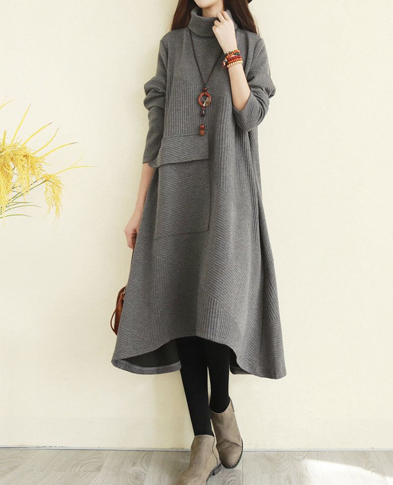 たっぷりとしたタートルネックにハイウエストの切り替えライン。さらに目線を誤魔化すスカート部分の切り替えなど、このワンピを着ればスタイルアップは確実!