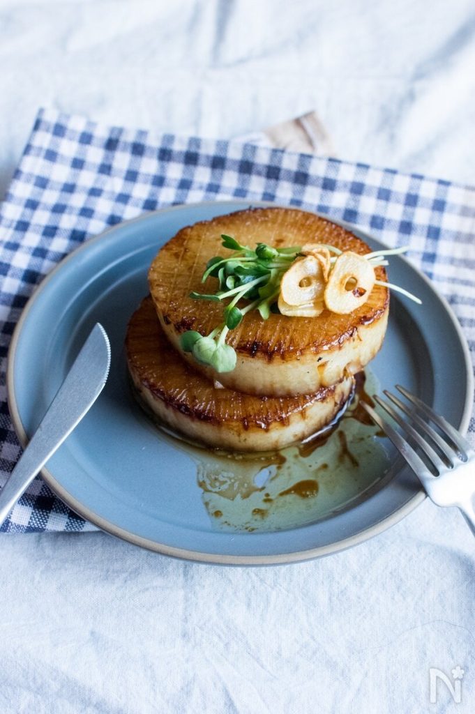 【下ゆで不要】ガリバタ風味の大根ステーキ