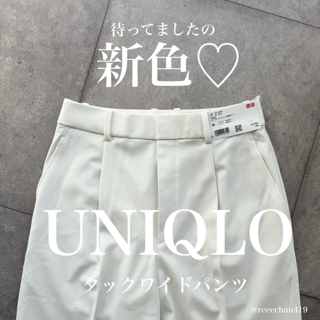 ユニクロの神パンツ、タックワイドパンツに新色のホワイトが登場。高身長さんもバランスがとりやすい丈長めバージョンは、オンライン特別商品です。