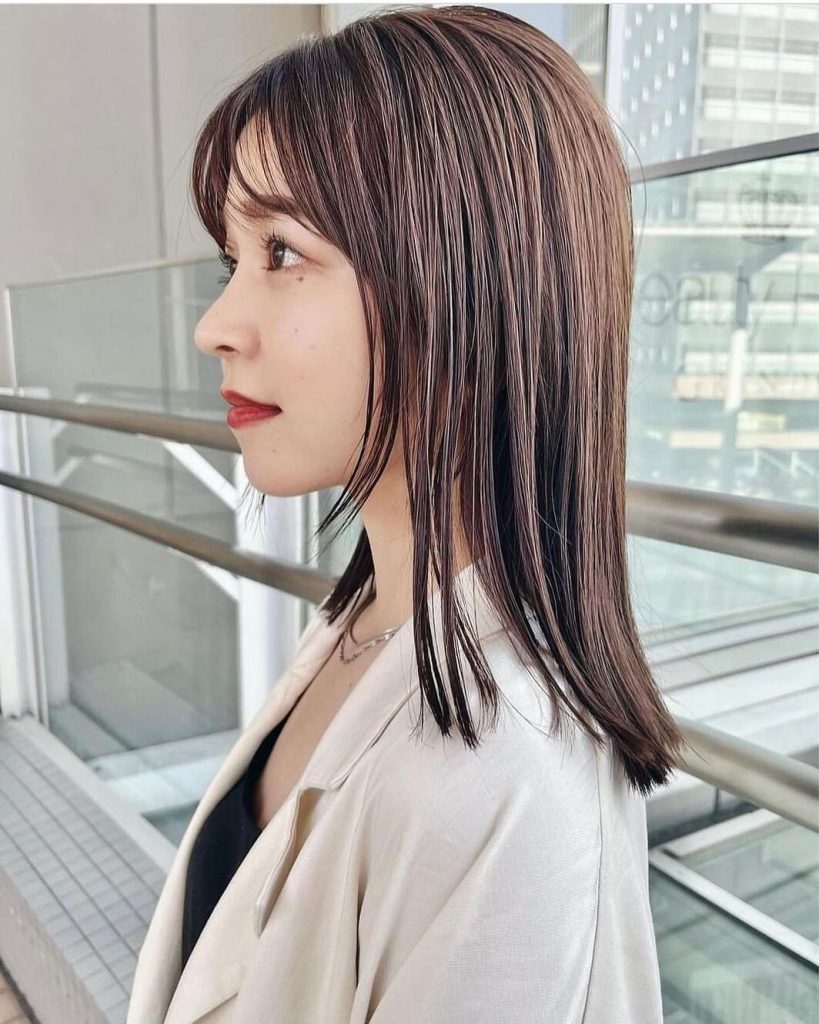 ブリーチなしでも透明感あるカラーは叶います。ベージュ+アッシュブラウンで肌馴染みも良く、温かみと抜け感のある印象です。ツヤカラーだと透け感もUPし、ブリーチなしでもキレイな色味に。