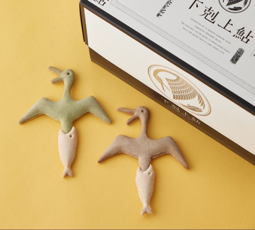 「鵜飼」という伝統漁法で、”鵜に呑み込まれ続けてきた鮎”が、一念発起し、「下剋上」を図ったユーモラスな焼き菓子。スポーツなどの絶対に負けられない試合の応援に、難関受験や就職活動の逆転合格祈願に、ビジネスシーンでの験担ぎに、上司へのジョークを交えた昇進祝いに…など、人生の様々な「負けられない」局面で、役立つギフトです。ちょっとした贈り物としても、喜ばれること間違いありません。鮎は和三盆糖味。鵜は抹茶味、黒糖味の2種類で、サイズも大と小の2種類あります。食べ比べもいいかもしれませんね。