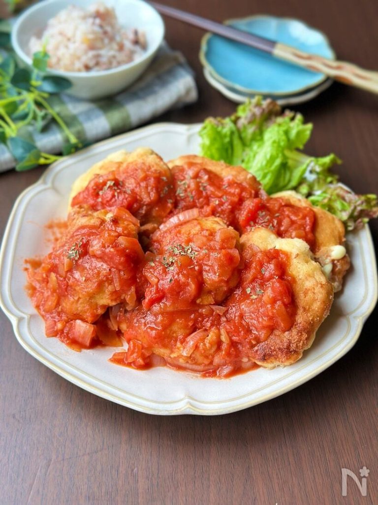 【鶏むね肉と豆腐のガリトマチーズチキン】節約/カサマシ | レシピサイトNadia