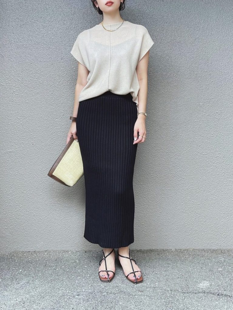 ①涼しげなニットでウエストをカバー「フレンチスリーブニット」