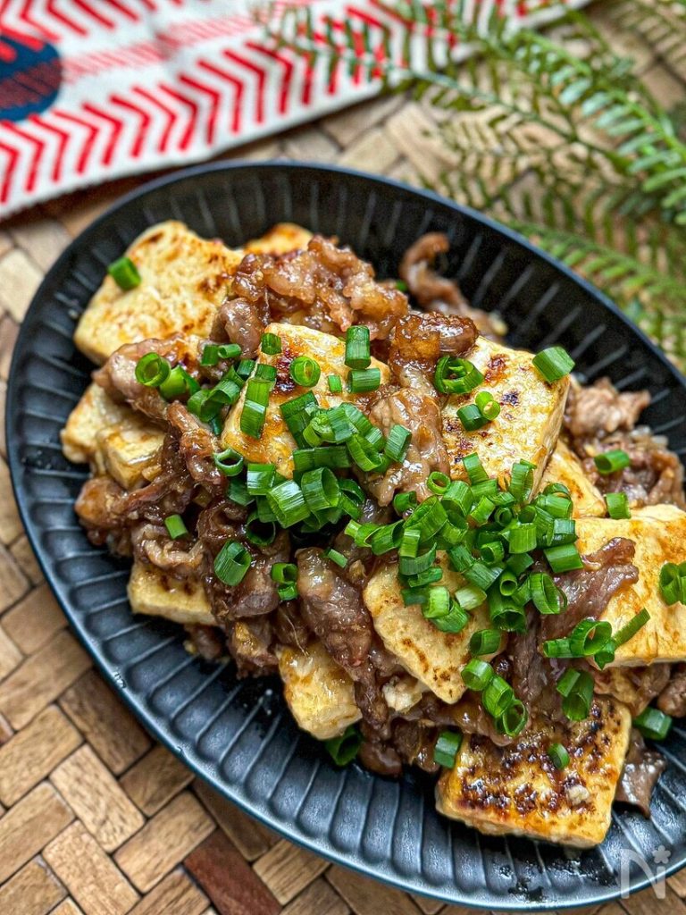 お肉少なめでも大満足!豚こま肉と豆腐を使ったボリューム満点な生姜焼きです。やや濃いめの味付けでご飯がもりもりすすみます。