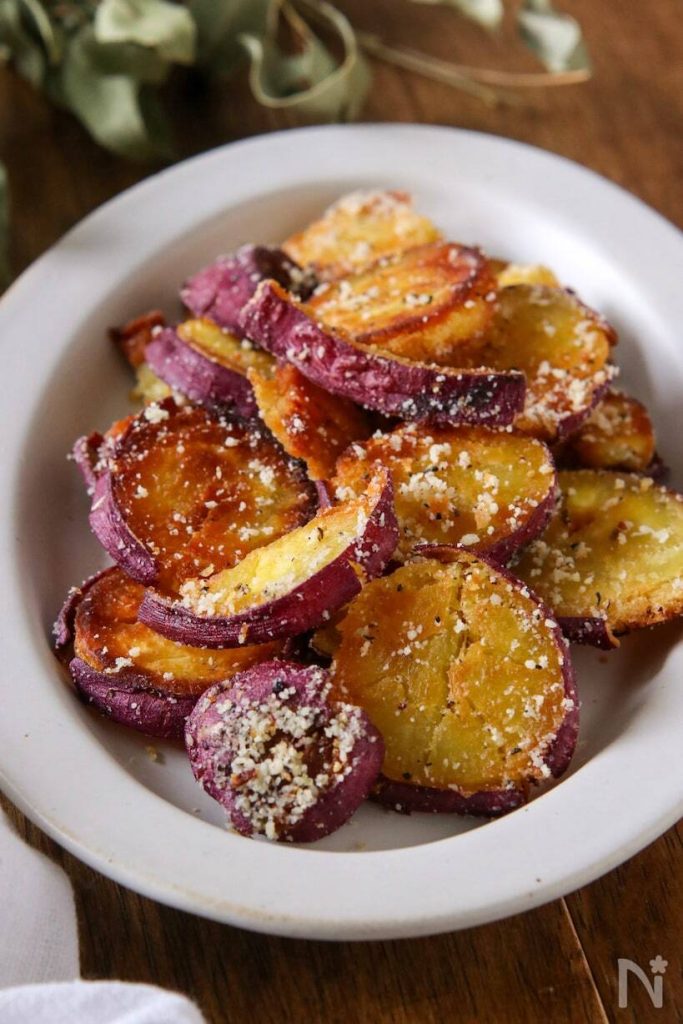 ザクザク食感が楽しいさつまいもで作るフライドポテトは、少ない油で揚げ焼きできちゃう簡単レシピ。粉チーズ・ガーリックを使った味付けはパンチがあってお酒の肴にぴったりです。じゃがいもとは違ったフライドポテトはクセになること間違いなし!