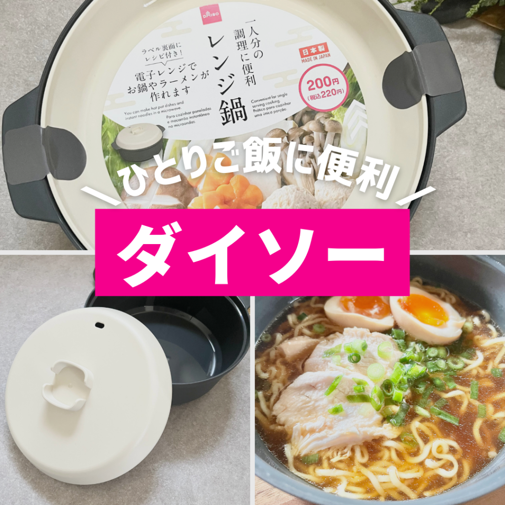 ダイソーの「レンジ鍋」をご存知でしょうか。電子レンジだけで、一人鍋、ラーメン、うどんなどが作れる便利な調理グッズです。あまりにも優秀すぎて、購入してから毎日使っているくらいお気に入り。ひとりご飯をラクしたい人におすすめです。